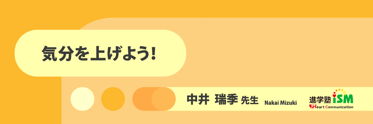皆さんも様々なものが気分をあげてくれるのではないでしょうか。学校やISMのテストも近づいてきました。音楽を聞いたり、運動したり、おいしいものを食べたりして気分転換しながら頑張っていきましょう。